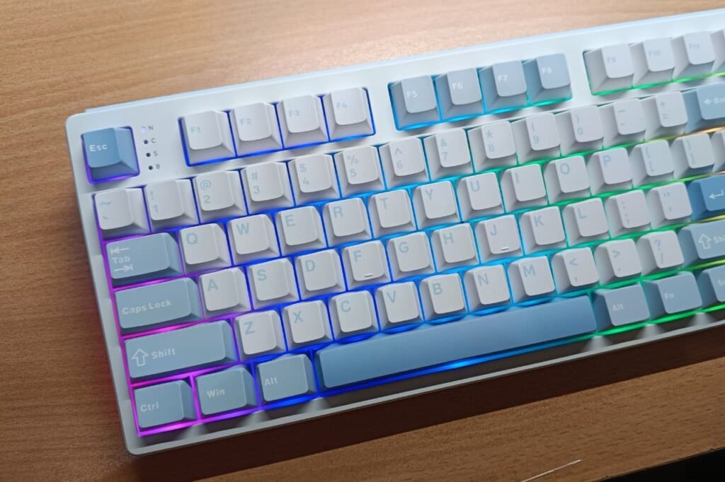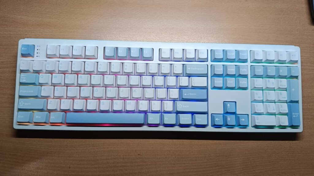 The TH108 is available in two colors: black and a blue-and-white. I have the blue-and-white version, which features a solid white base with a combination of blue and white keycaps. I love these colors; they look beautiful on my desk.