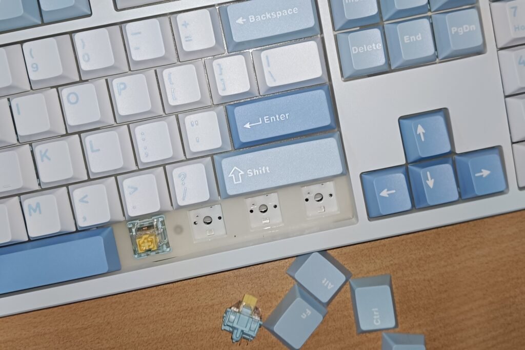 When I first took it out of the box, I was instantly impressed. The blue and white colorway is so clean and it just looks great on my desk. The build quality feels solid and premium, even though it’s a ABS plastic body. You can give it a little twist if you really try, but for everyday use, it’s super stable and doesn’t feel cheap at all.