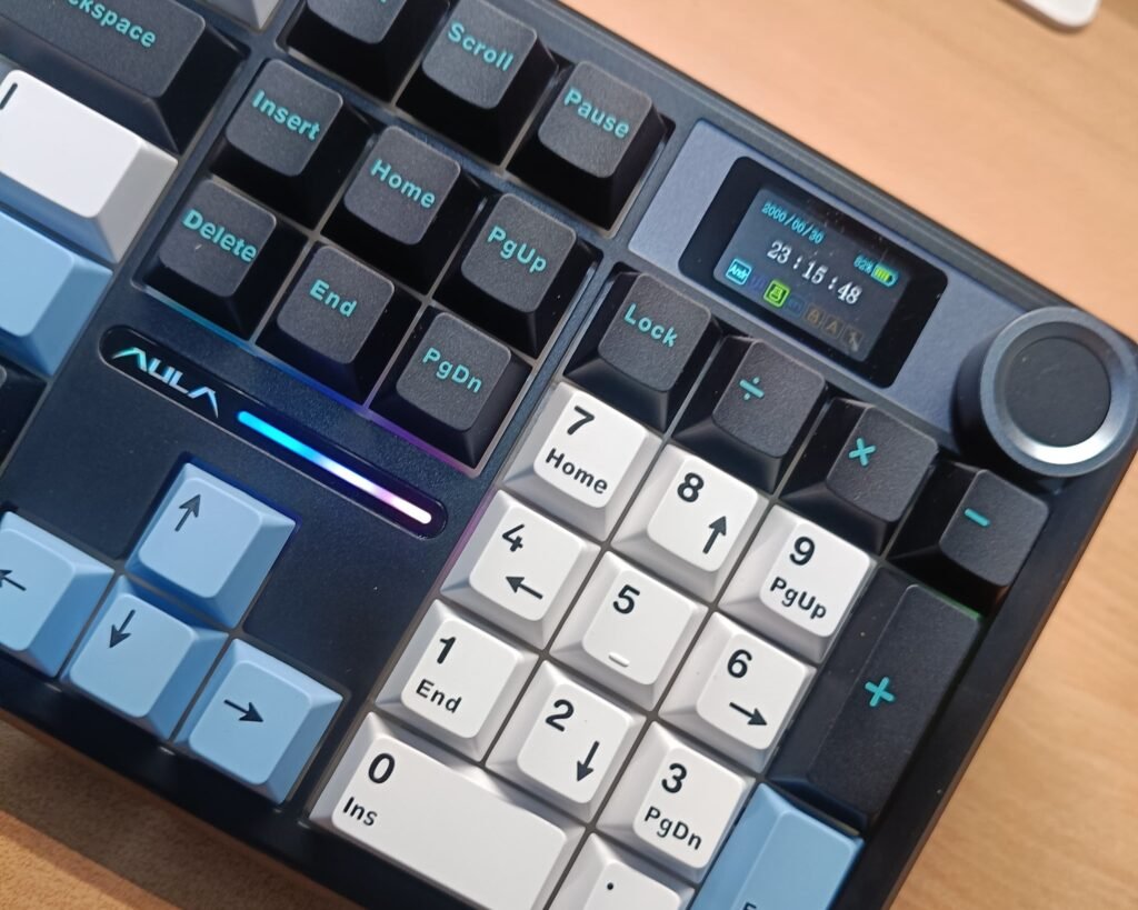 Positioned above the numpad, the 1.14-inch TFT screen is the keyboard’s centerpiece. By default, it displays vital stats: date/time, battery percentage, connection mode, and OS (Win/Mac).