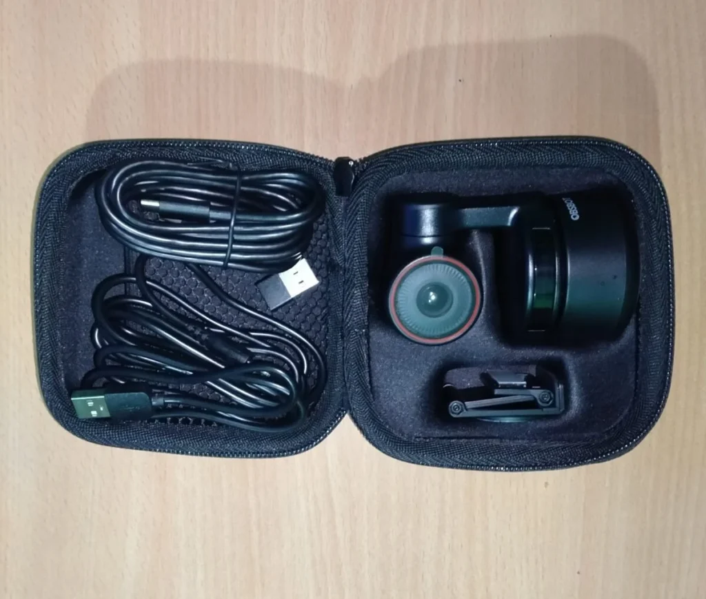Opening the box, we get user manual documents and a high-quality carry pouch, in which first you get the Tiny 4K Webcam, a magnetic mount base, then a USB type-C to type-C and power USB type-A to pin power supply cable, and then we have a type-A to type-C adaptor. That’s all that we’ll get in the box.