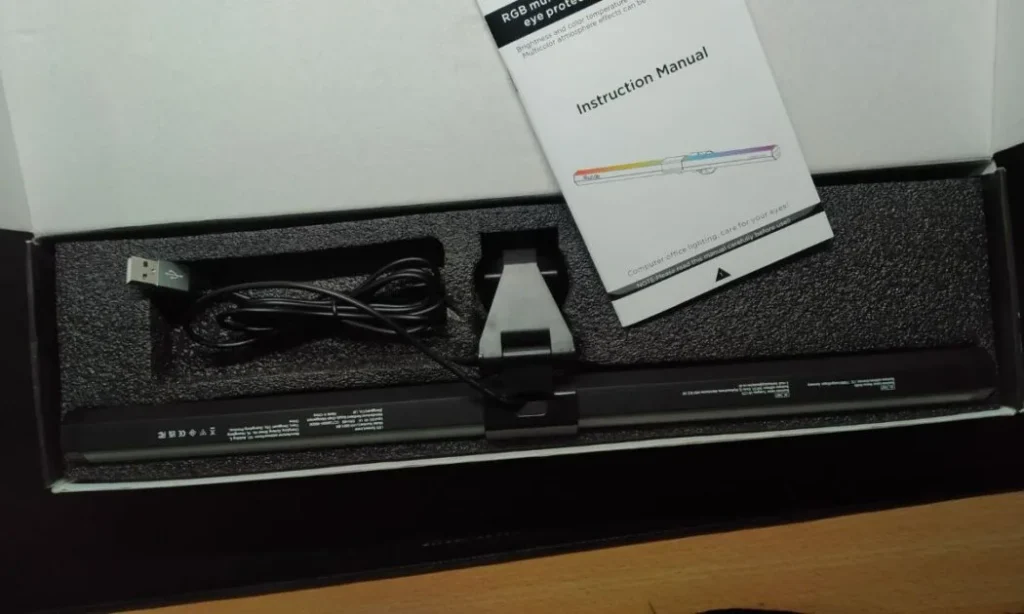 In the box, first we get a user manual, and then we have the Quntis RBG lamp, the mounting clip, and a USB cable that is pre-connected to it. The packaging is good which can not damage light while shipping.